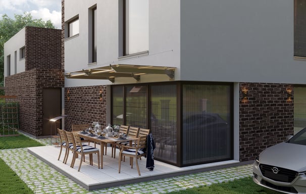 . Prie įėjimo į namą ir garažo yra stogelis;